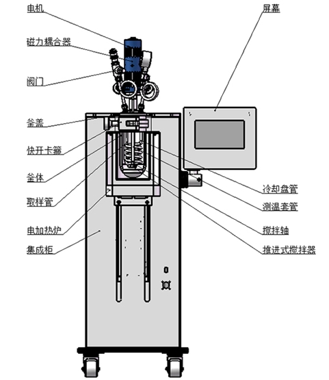 產(chǎn)品功能和特點(diǎn):升降型式,機(jī)電一體化設(shè)計(jì)、結(jié)構(gòu)緊湊;框架支撐結(jié)構(gòu),配腳輪方便移動(dòng);主體可快開(kāi)設(shè)計(jì),開(kāi)閉釜操作方便、快捷;升降輔助機(jī)構(gòu)方便操作,手動(dòng)/電動(dòng)可選;高扭矩磁力傳動(dòng),配優(yōu)選電機(jī),提升運(yùn)行穩(wěn)定性;攪拌支持定制槳葉類(lèi)型,適配多樣化攪拌需求;加熱爐傳熱快,均熱效果好,效率可調(diào);真彩色觸控屏,模塊化顯示,控制界面操作簡(jiǎn)潔;支持遠(yuǎn)程控制,具備RS485通訊口,配上位機(jī)軟件;可顯示工作時(shí)間/溫度/轉(zhuǎn)速/壓力,PID自整定控溫精準(zhǔn);具備安全連鎖功能,超溫超壓報(bào)警;具備數(shù)據(jù)采集,記錄以及報(bào)表導(dǎo)出功能;支持選配加料、計(jì)量、取樣、冷凝等擴(kuò)展功能。